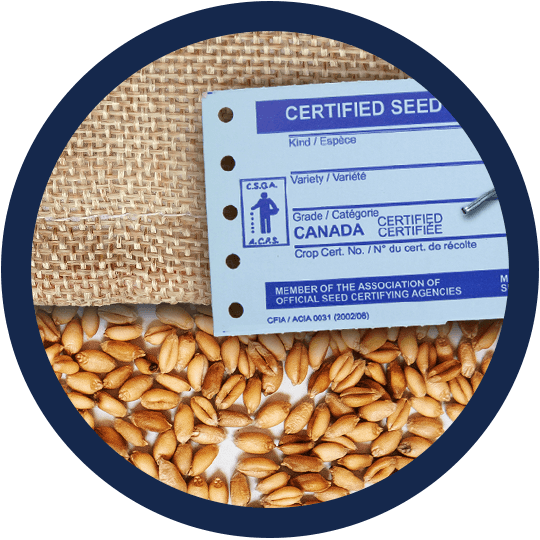 The Blue Certified Seed Tag means that the seed was grown under the rigorous testing and quality assurance programs of the Canadian Seed Growers’ Association (CSGA) and the Canadian Food Inspection Agency (CFIA). The seed passed inspection by a CFIA-licensed inspector in the field and again in a CFIA-accredited seed laboratory and cleaning establishment to ensure it meets CSGA and CFIA requirements, germination standards, mechanical impurities (like weeds and other crops) and, most importantly, varietal identity and purity.